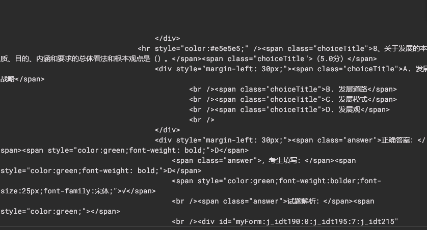 在解析出来的HTML里面包含了所有题目的题干、选项、作答情况和正确答案,即可后期编写程序对这个html页面进行爬取。