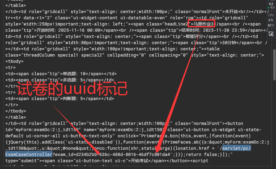如图这里是马原作业3的抓包结果,则马原平时作业3对应的uuid就是d234b2bb-636c-488d-8016-46df7c801da4,